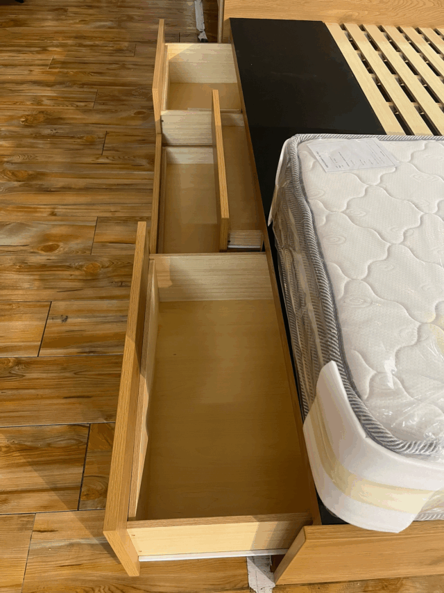 引き出し収納付きで、衣類や寝具をすっきり整理。
