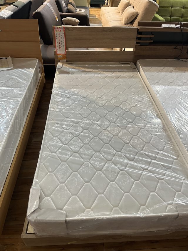 ベッドフレームとマットレスがセットになった、シングルサイズベッドです。