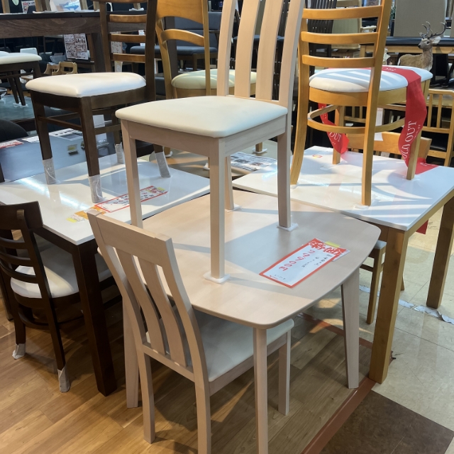 ナチュラルでやさしい木目が魅力のビーチ材突板を使用した、ダイニング3点セットです。