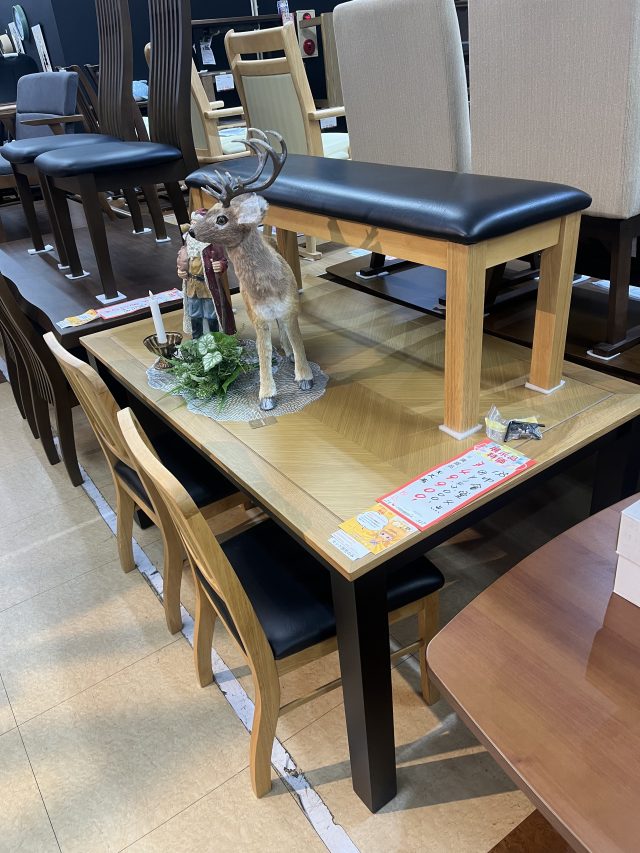 天板に表情豊かなヘリンボーン柄をあしらった、デザイン性の高いダイニング4点セットです。