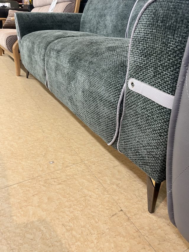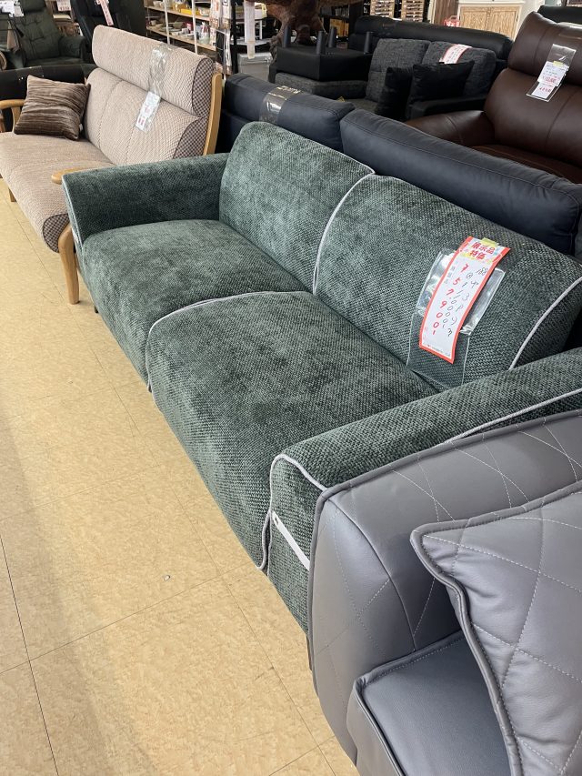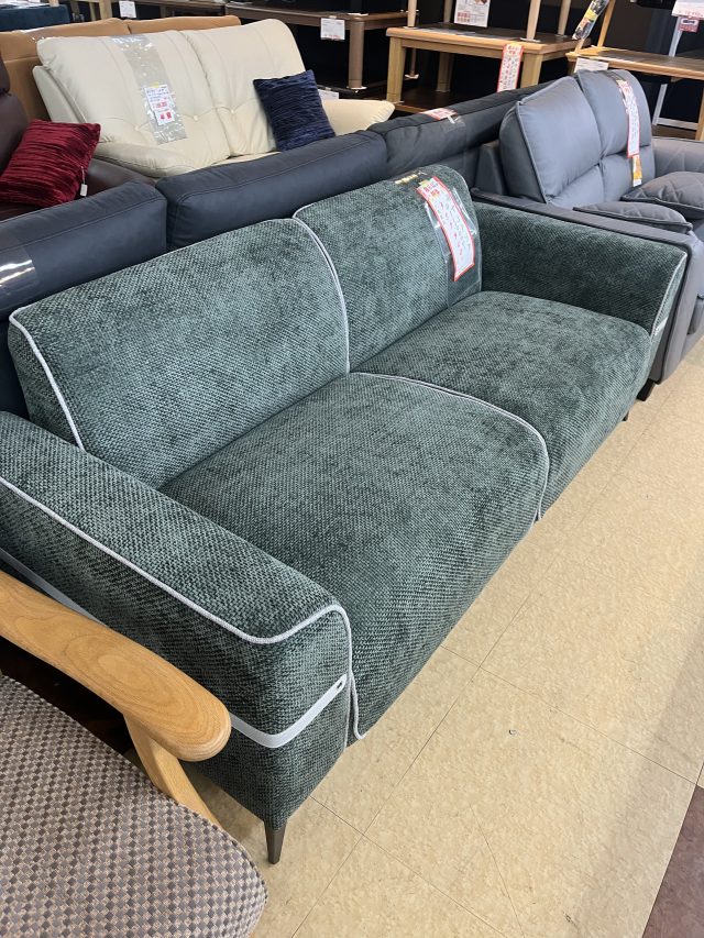 やさしい色合いとシンプルなデザインが魅力のファブリックソファです。