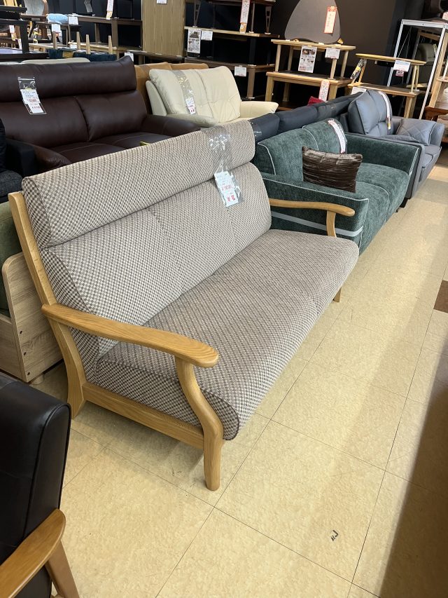 フレームにオーク無垢材を使用した、上質感あふれるファブリックソファです。