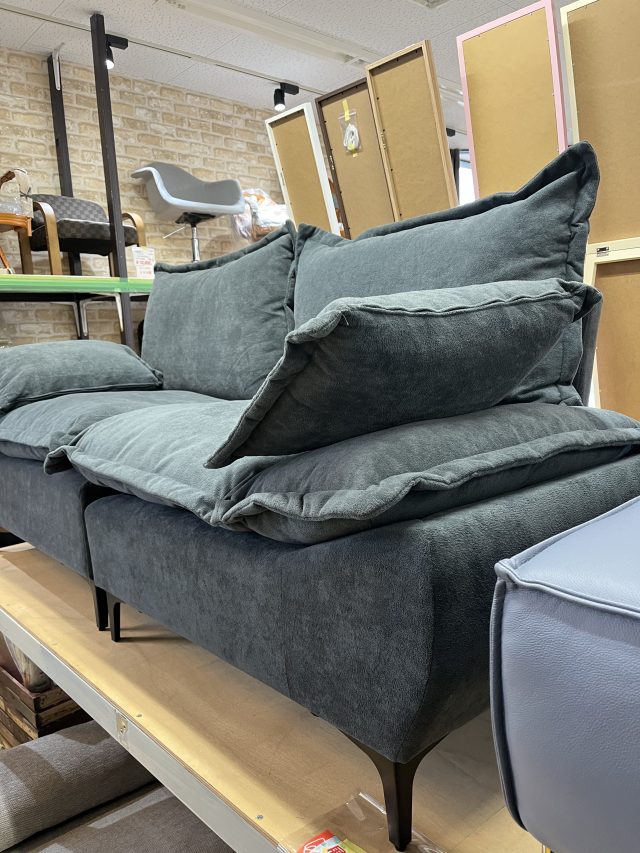 ふんわりとしたもこもこ感が魅力のファブリックソファです。
