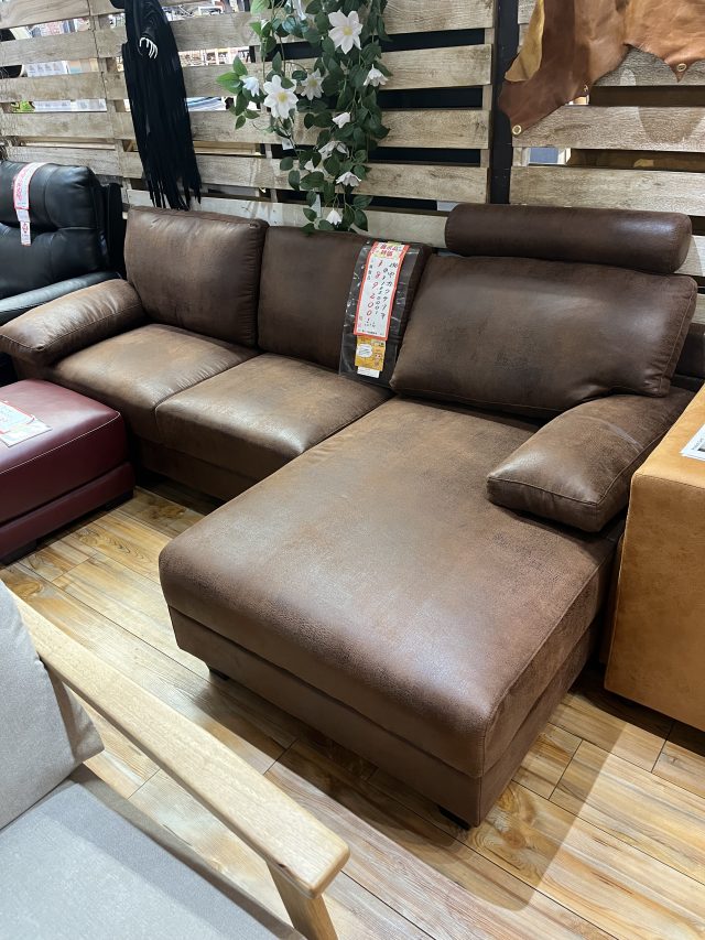 ゆったりとした幅240cmのサイズ感が魅力の、レザーファブリック製カウチソファです。