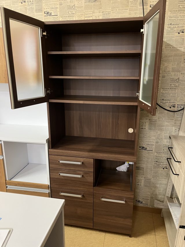 上部は食器収納、下部は引き出し・収納スペースとして使いやすい構成となっており、
