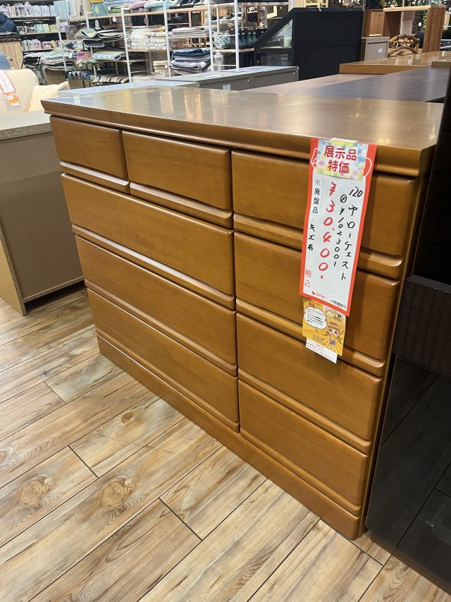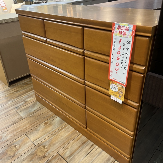 シンプルで使いやすい 木製ワイドチェスト(120cm幅)