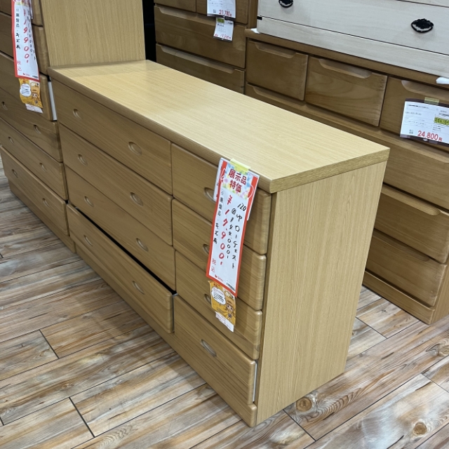 横に広いフォルムで圧迫感が少なく、リビングや寝室、テレビボード代わりとしても活躍します。
