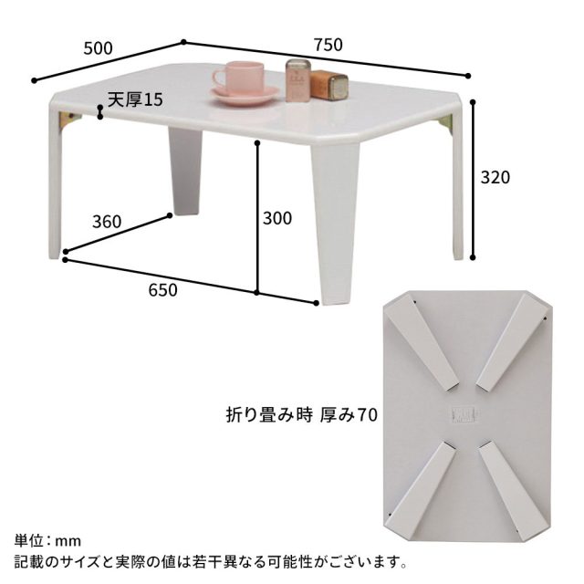 光沢感のあるハイグロスシートを使用した、シンプルで使いやすい折り畳みテーブルです。